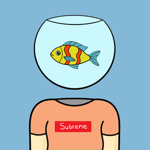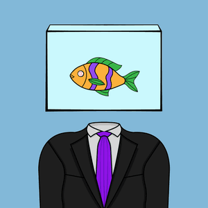 Toen we aan dit NFT project begonnen, hadden we geen idee waar we het over zouden laten gaan. We begonnen met onderzoek en waren op zoek naar inspiratie. We hadden een aantal ideeën opgeschreven, maar konden geen beslissing nemen omdat geen van hen echt opviel. We besloten om zo willekeurig mogelijk te werk te gaan. Na een paar ideeën en schetsen kwamen we op het idee van een vis die in een kom leeft en een menselijk lichaam bestuurt. Zodra de eerste schetsen klaar waren, waren we behoorlijk enthousiast.